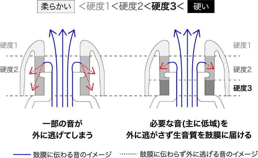 | イヤーチップ | 5サイズ(XXS、XS、S、M、L )、フォーム層などの構造改良あり | 5サイズ(XS、S、M、ML、L)+3層構造シリコン製 |